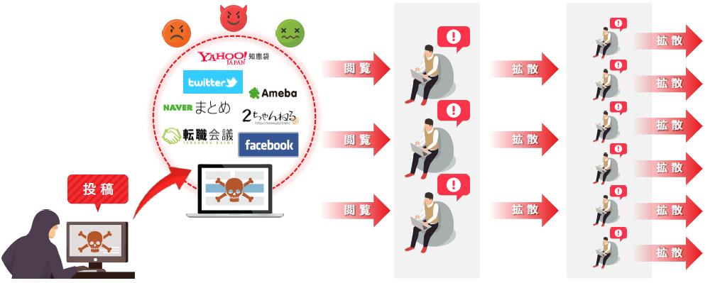 たったひとつの記事や書き込みが爆発的に注⽬を集め、多⼤な損害を受けるリスクは、