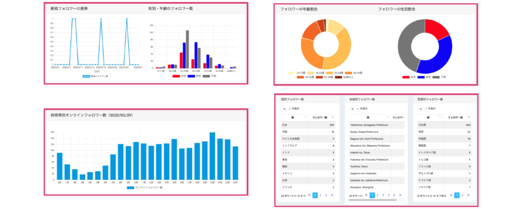 フォロワーのデモグラフィック情報(年齢や性別など)も
