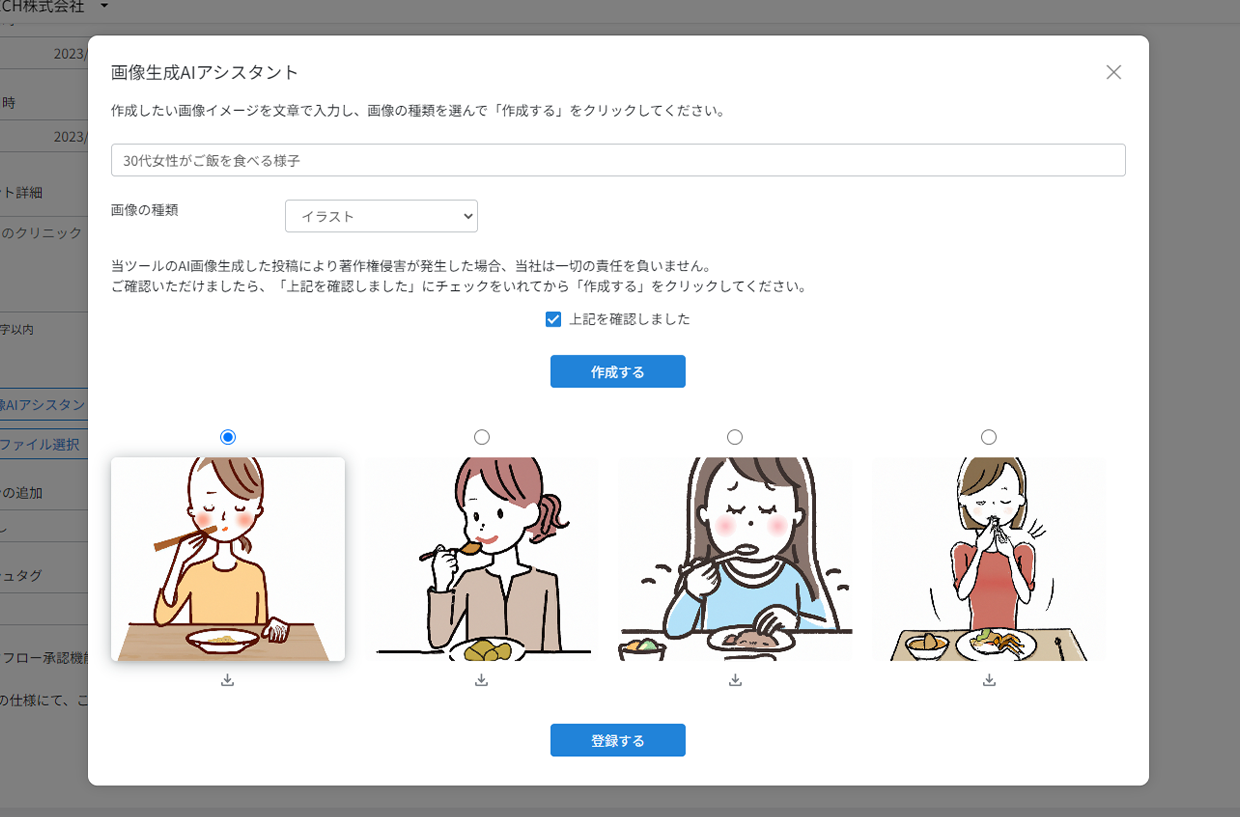 AIが投稿文・画像を複数パターン生成