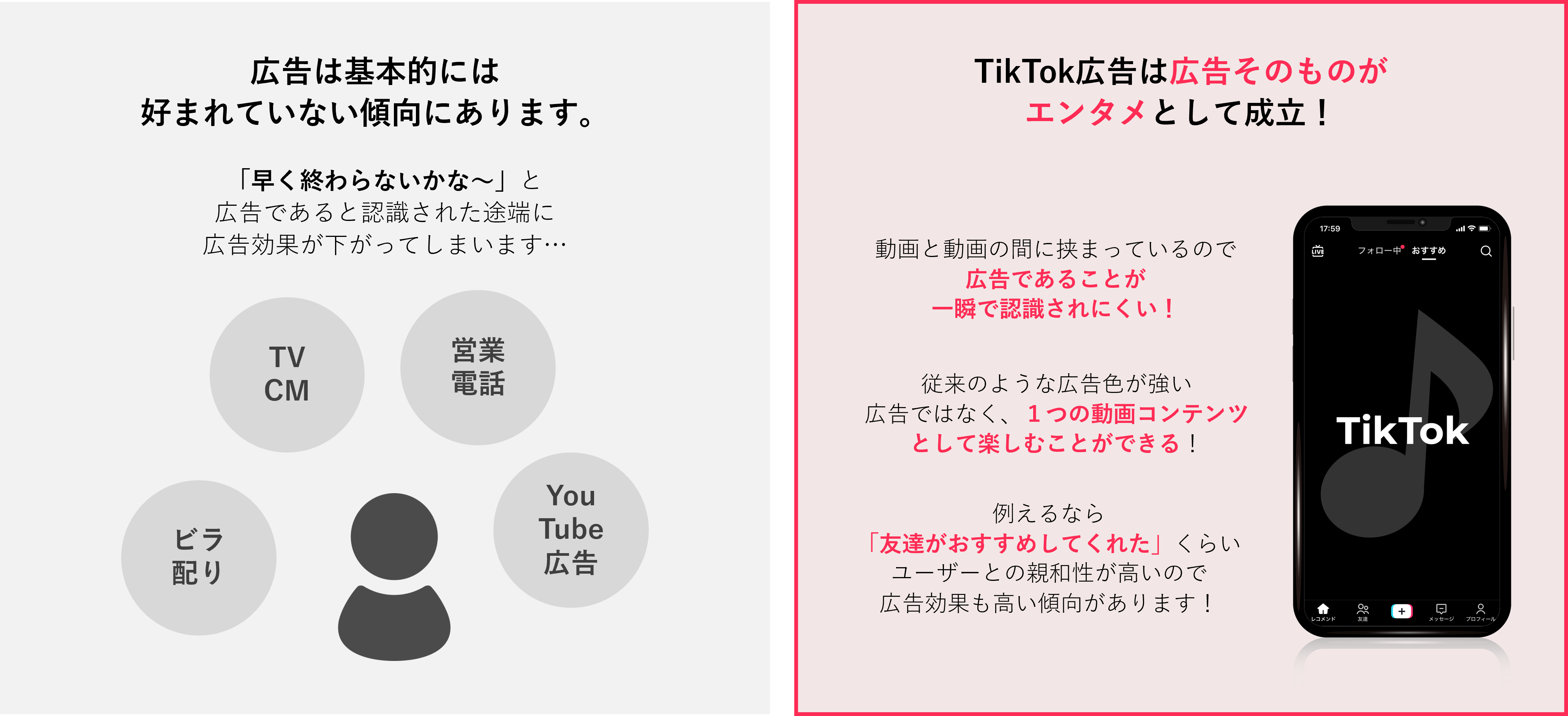TikTokではレコメンド機能によってユーザーが興味・関心のあるコンテンツがおすすめ動画として表示されます。